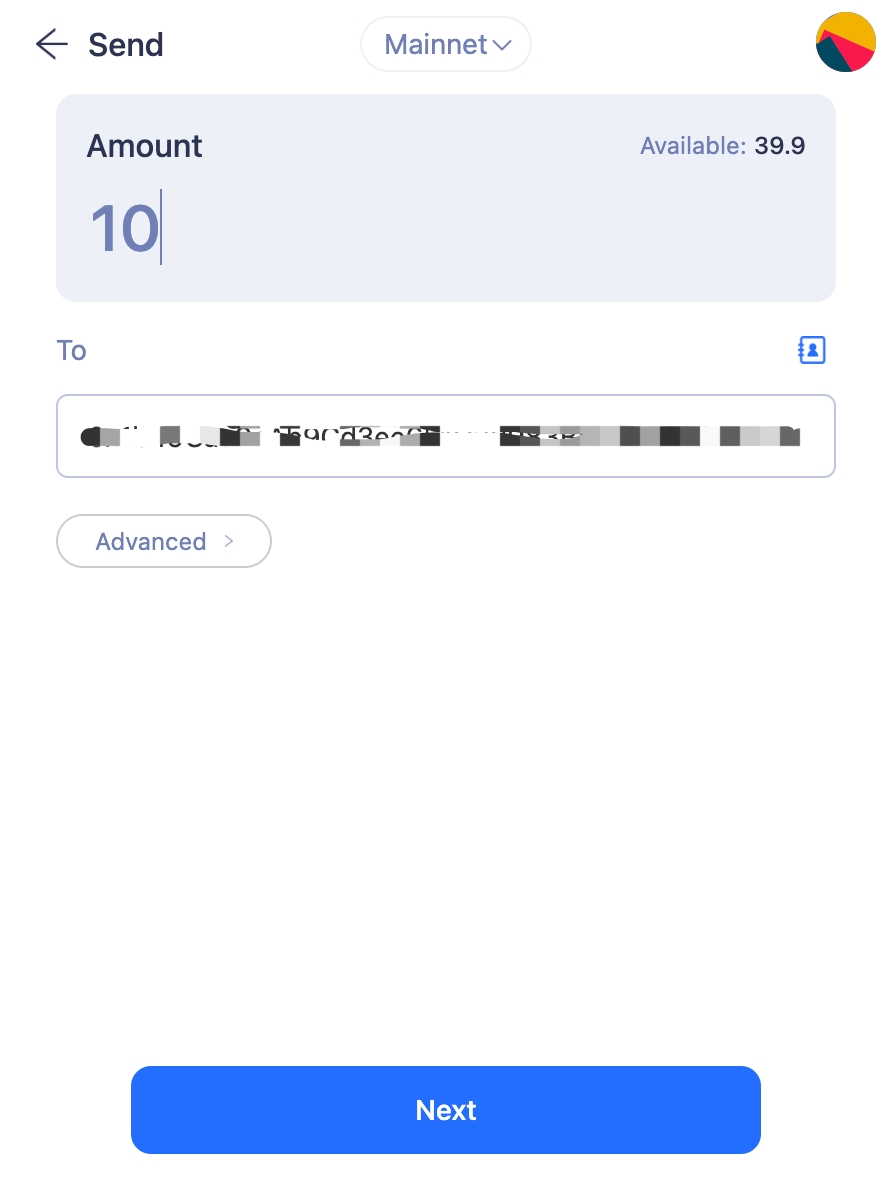 Step 4. Enter the Amount of tokens you want to transfer and click Next. Then confirm in MetaMask wallet.
